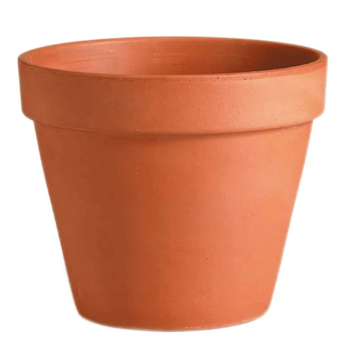 En terre cuite naturelle, poreuse, résistante au gel et avec trous de drainage : c'est l’idéal pour laisser respirer les racines.