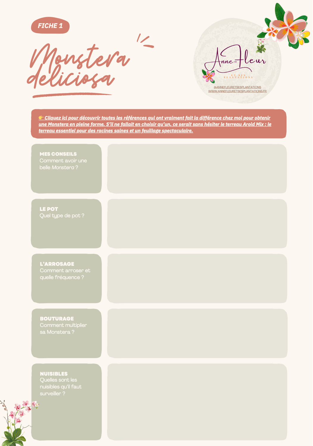 Après ton inscription tu recevras en cadeau ma fiche de culture de la Monstera deliciosa !